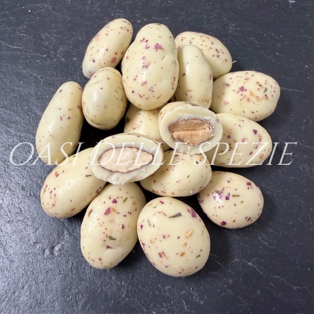 Amandes au chocolat, citron et pétales de rose bio