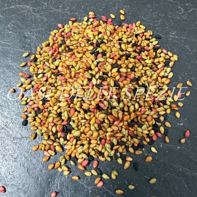 Zutaten: GERÖSTETER SESAM , SCHWARZER SESAM , Salz, Zucker, Knoblauch, Chili, Gewürze(SENAPE), Yuzu-Saft, FISCH-Sauce, SOJA-Sauce (SOJA, Salz, Koji, Alkohol, davon WEIZEN), Hefeextrakt, Proteinhydrolysat, Chlorella-Pulver, Wasabi-Pulver (0,02%), Ume-Pflaume, Shiso-Aroma, Aromaextrakt, BONITExtrakt, Süßstoff (Stevia), Geschmacksverstärker.